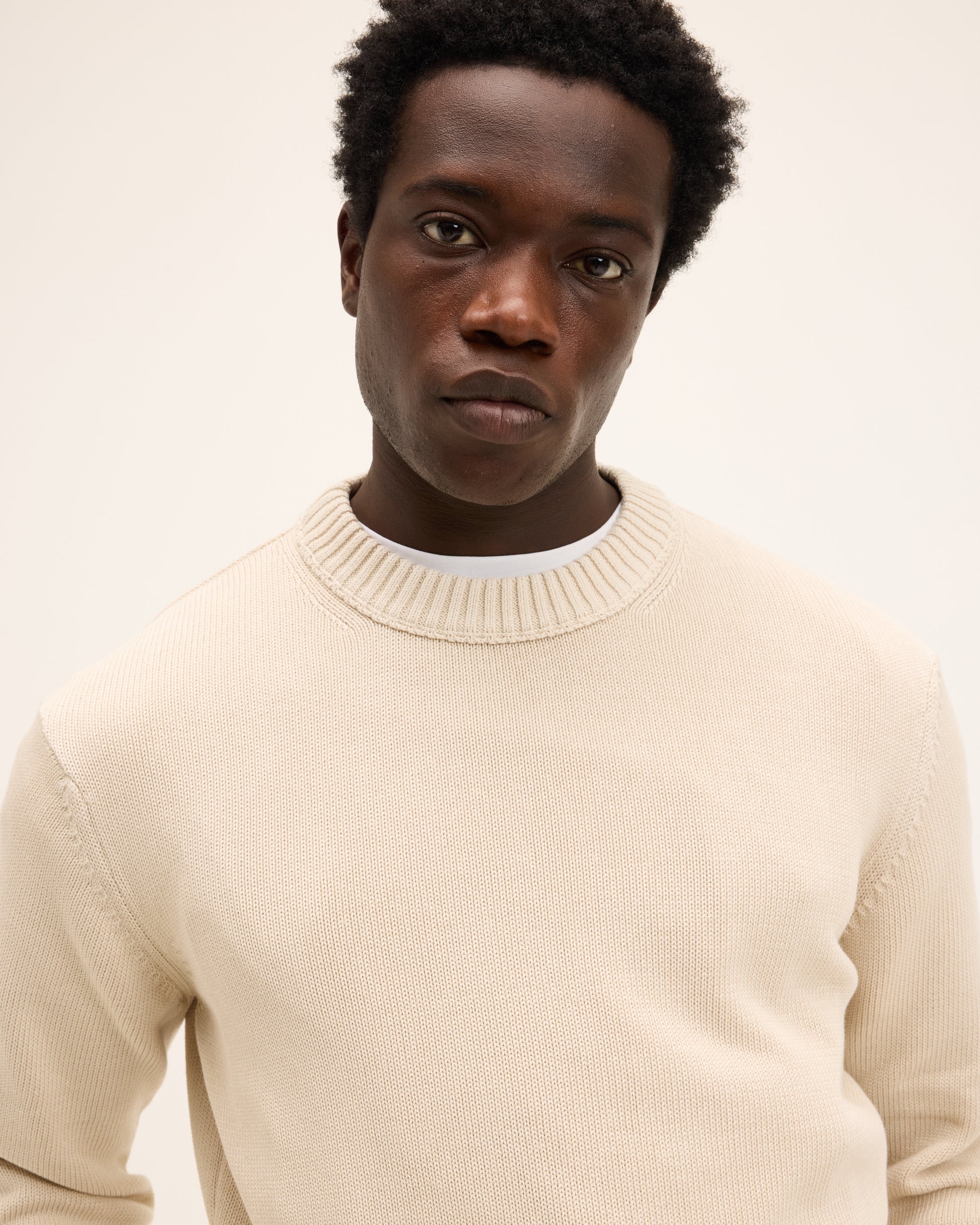The Kid Neck is a lightweight cotton knit with a soft feel and a classic round neckline. Easy to wear on its own or layered over a shirt for a more dressed look. Finished with ribbed cuffs and hem for a neat fit that stays comfortable all day.