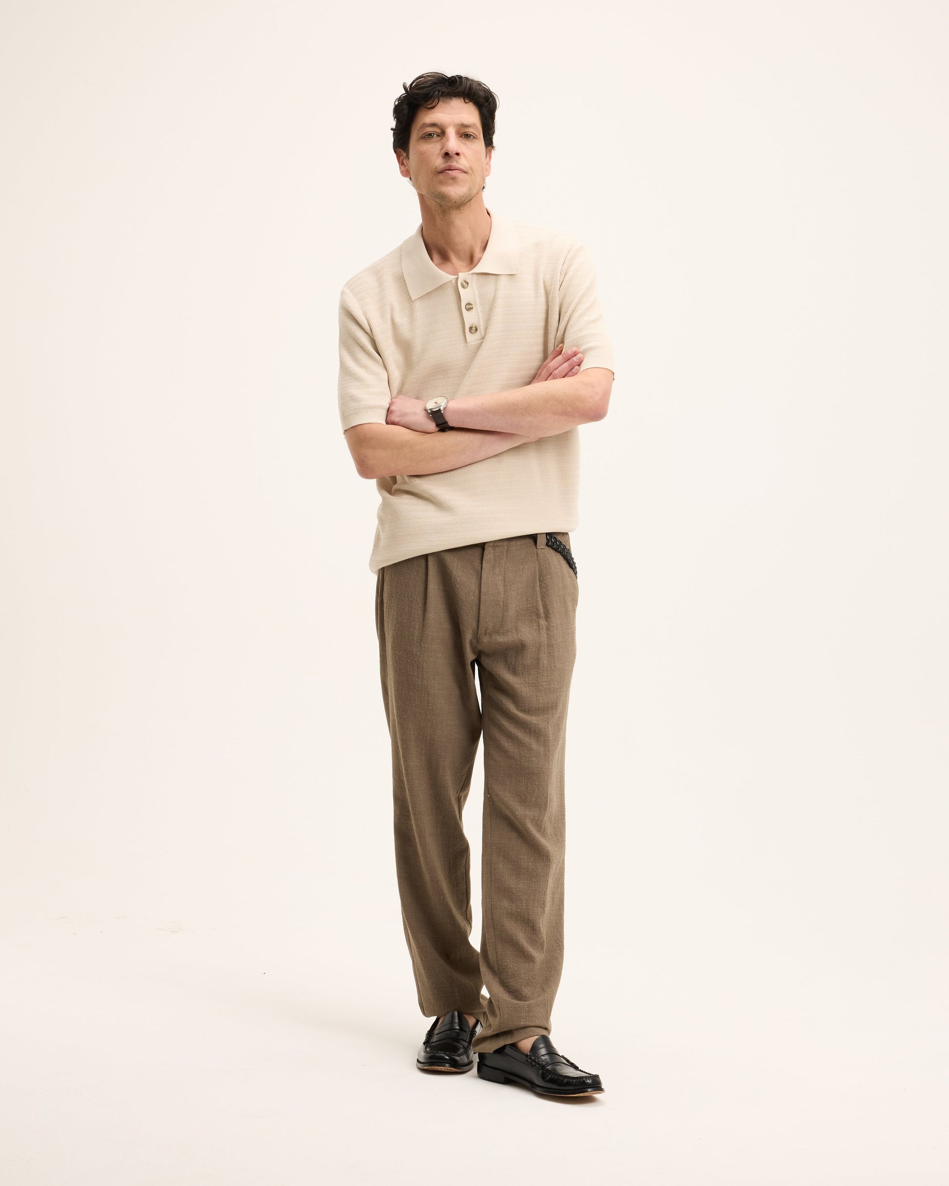 The Pstructure Polo is defined by its subtle textured knit, giving the fabric more depth than a regular polo. The surface feels light and breathable, making it comfortable to wear on warmer days while keeping a clean, refined look. The classic collar and button placket keep the design balanced, allowing the texture to stand out without feeling busy.