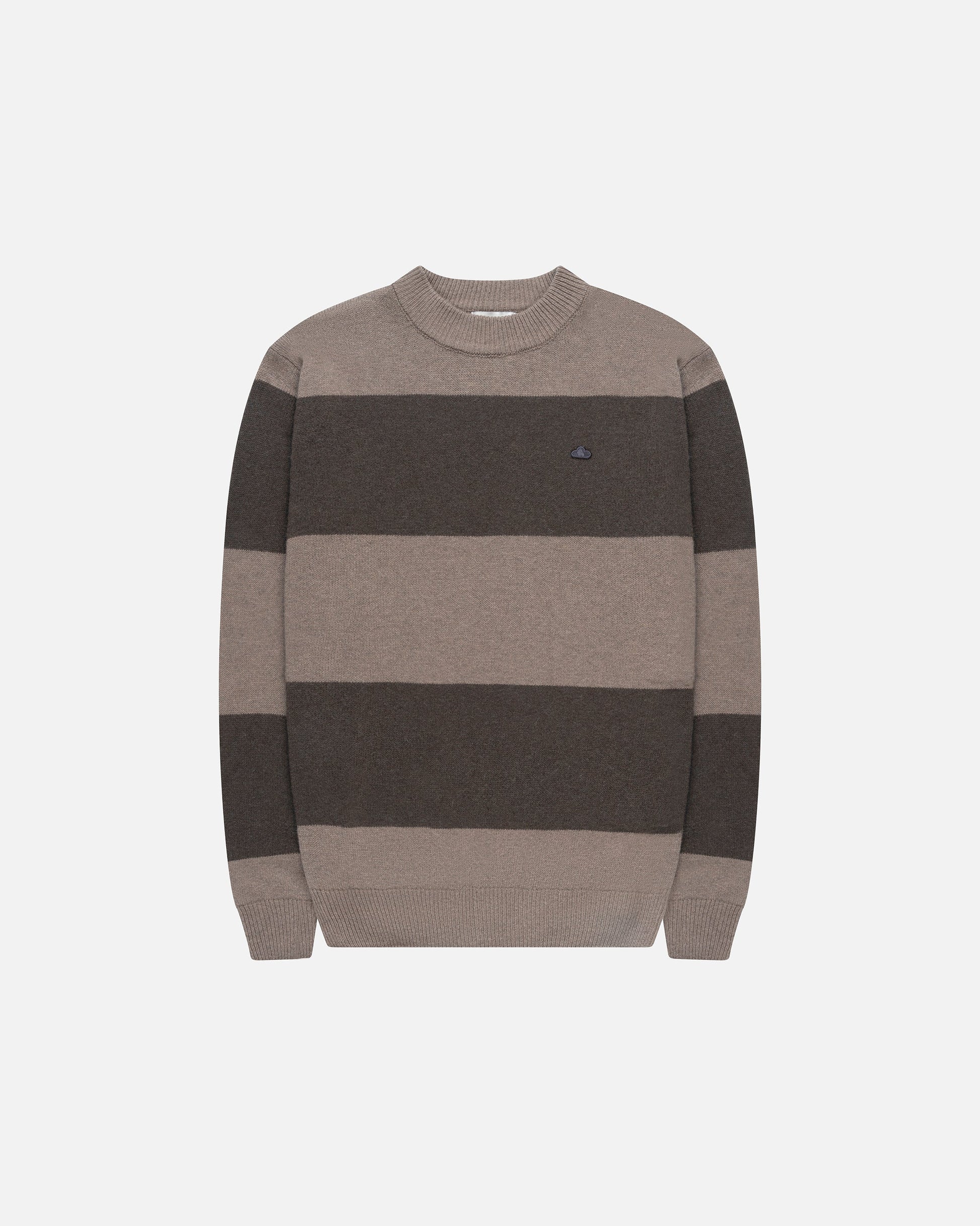 The Kylo, is a knitted sweater with wide horizontal stripes and finished with our iconic cloud logo on the chest and made from the best Italian wool blend with a mid-weight knitting. The Kylo has a comfortable fit, which makes it suitable for all seasons and easy to style. Produced in Italy and designed in Rotterdam, quality is guaranteed.