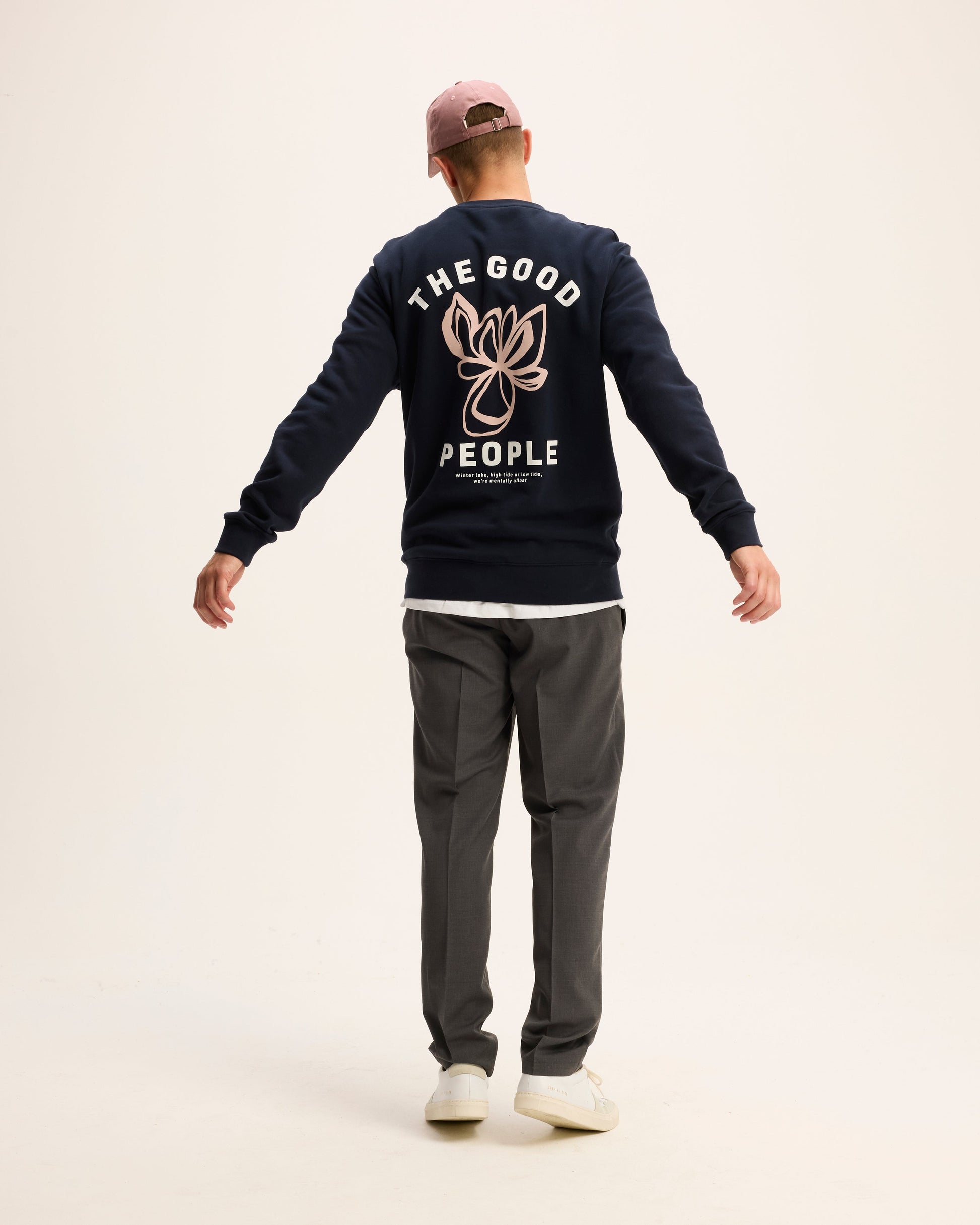 Made from 100% organic cotton, this sweater feels incredibly soft and cozy thanks to its semi-brushed inside. The outside has a sleek, smooth finish with a subtle carbon-like texture that gives it a polished look. Featuring a standout artwork on the back, it’s designed to keep things minimal in the front, and make a statement from behind.