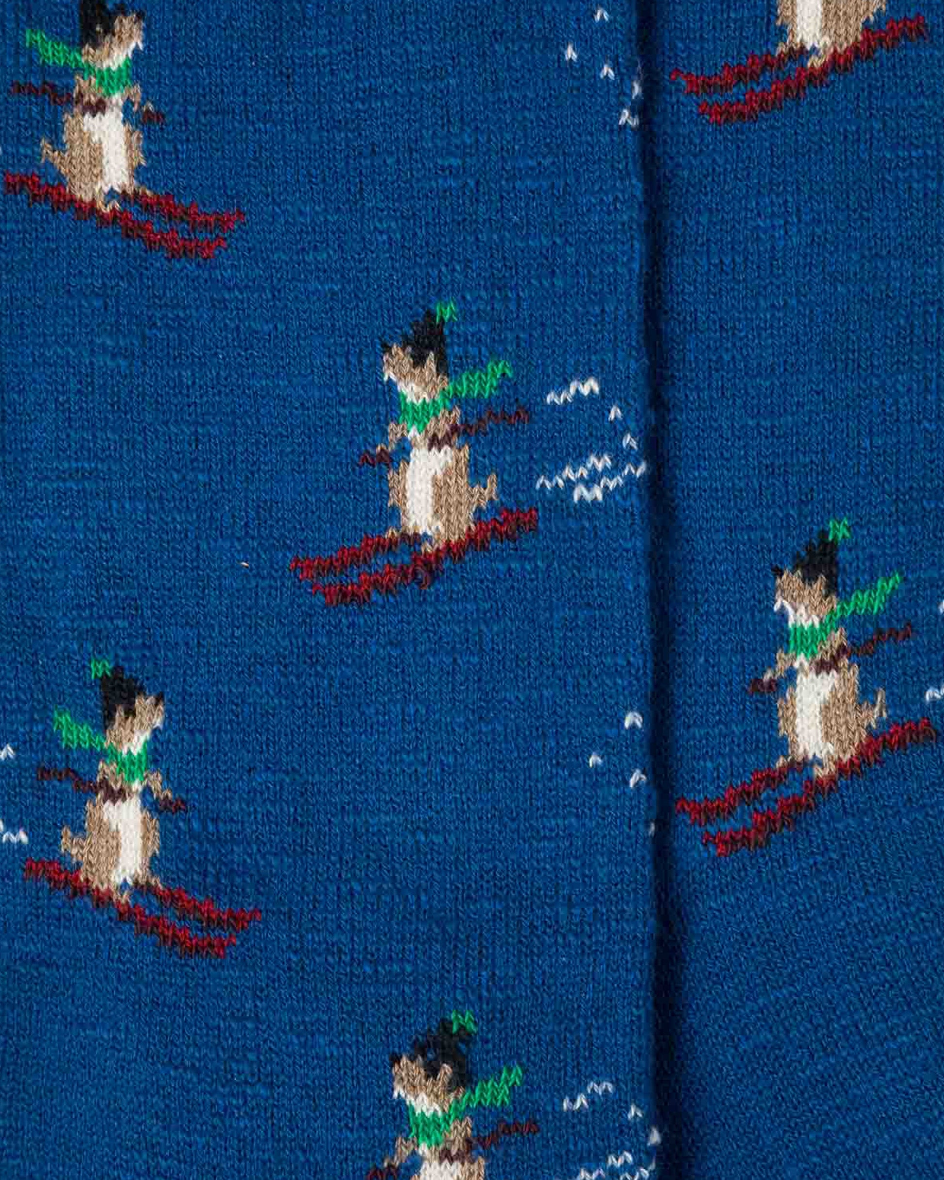 Ideal for après-ski, these mid-thick socks patterned with marmots skiing on the slopes are made in France.