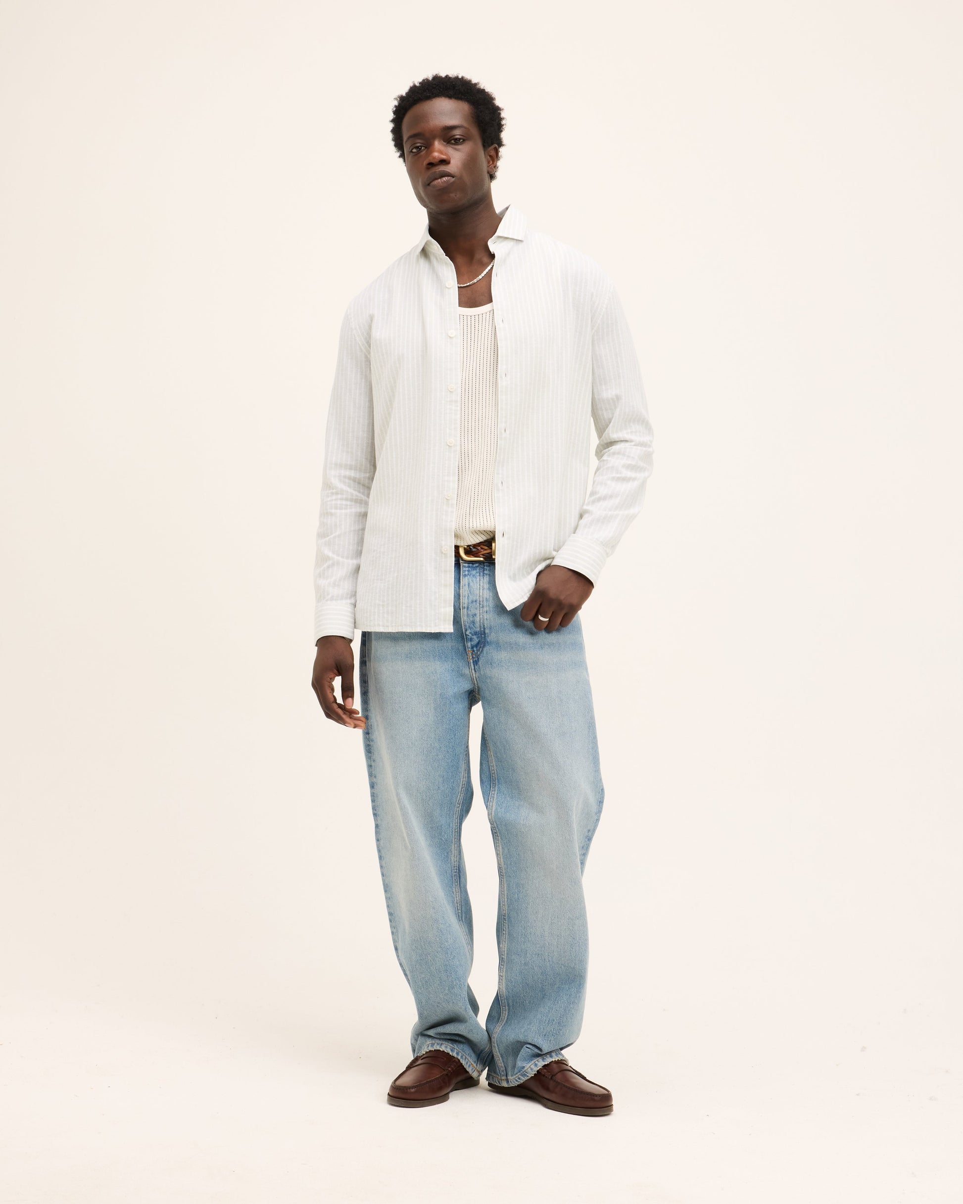 Constructed from a breathable linen blend, the Subway delivers comfort without compromising on style. With its classic stripe design and cutaway collar, this breezy button-up is ready to keep up with whatever your day brings. Made in Portugal.