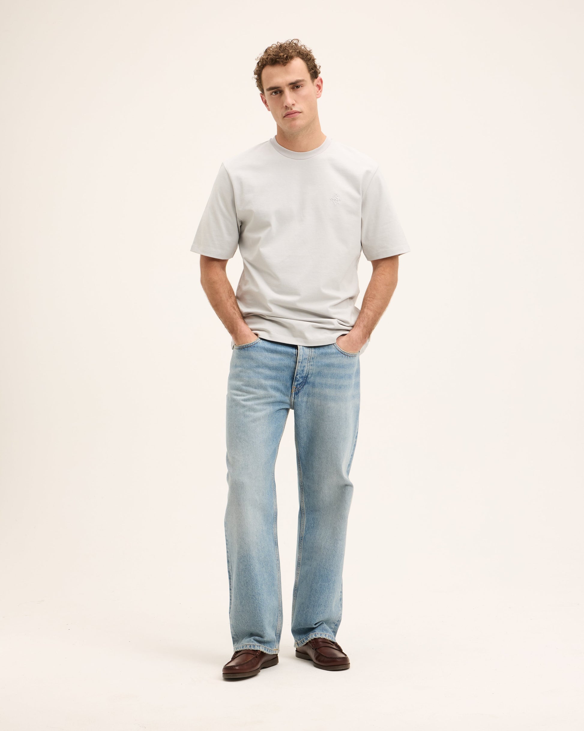 The Tommy Signature Tee is a clean, everyday t-shirt featuring our new signature logo, embroidered ton sur ton on the chest. The subtle branding keeps the look calm and refined, letting the colour and fit speak for themselves. Designed as the t-shirt same to the Lommy sweater, it carries the same understated character in a lighter, more summery form. Easy to wear on its own and just as effortless layered under a shirt or knit.
