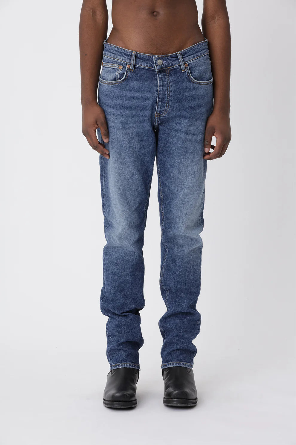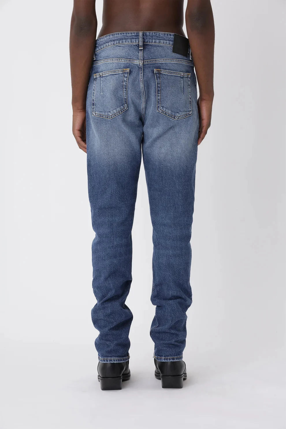 Archer is pair of relaxed slim-fit jeans in a regular length with a mid-waist, button fly, and tapered leg. The jean's construction comes with five pockets and five belt loops.