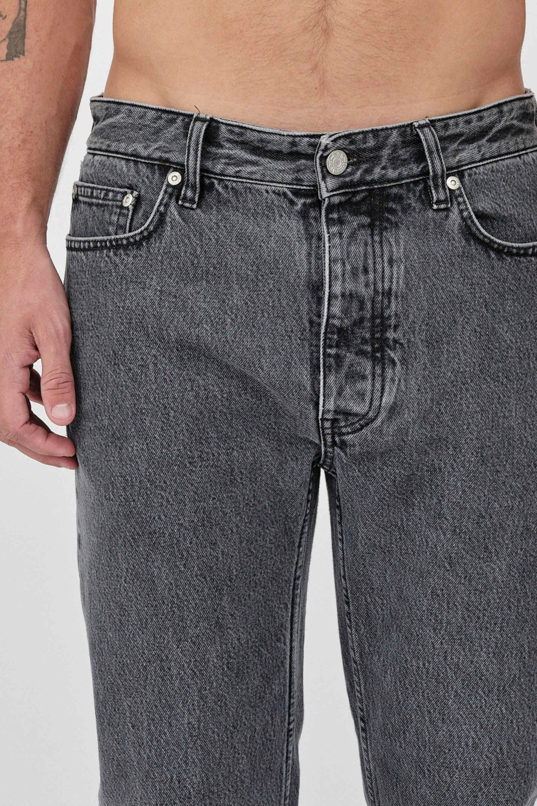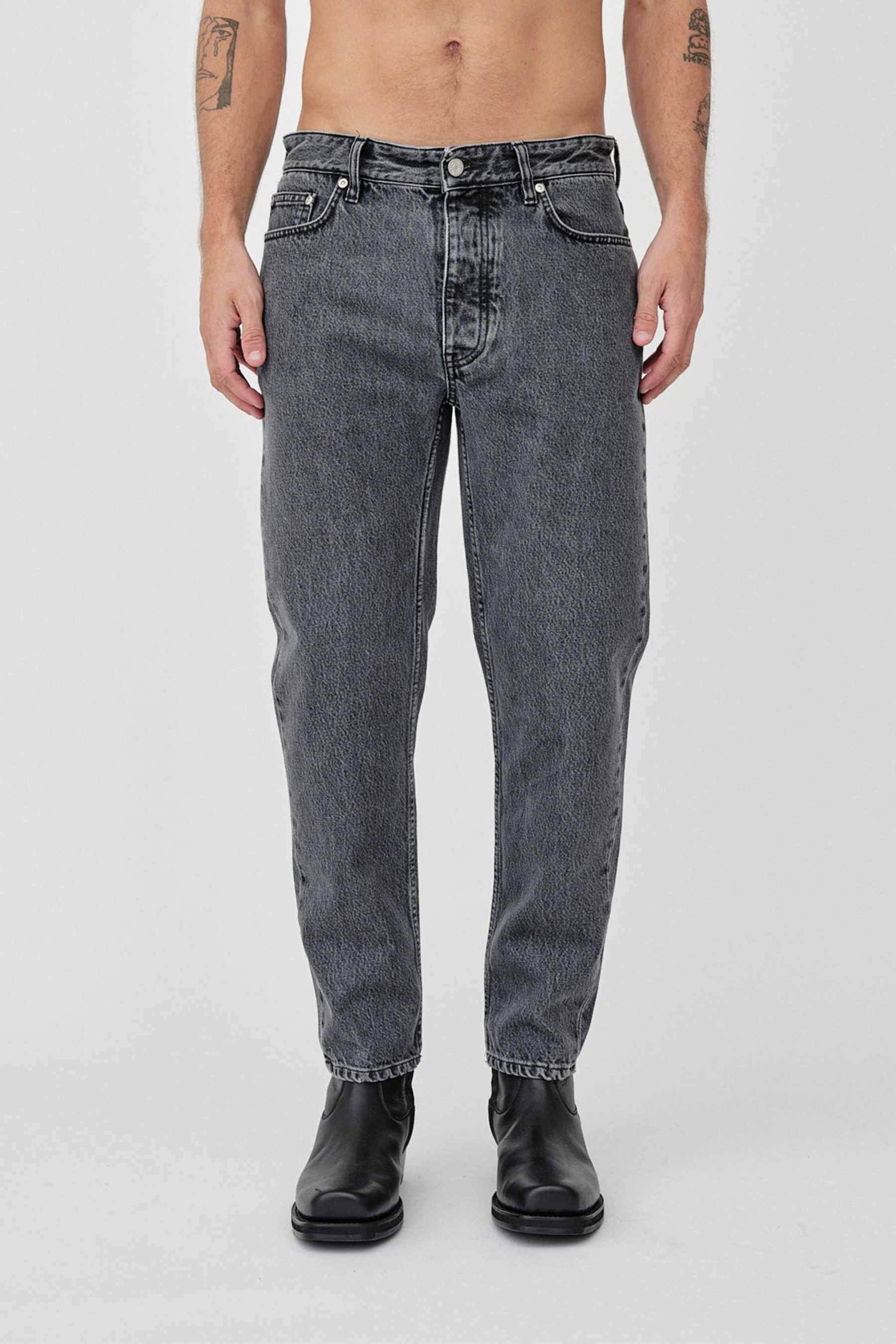 Ben is a pair of carrot-shaped jeans. The jeans have a mid-waist, button fly, and a cropped, tapered leg. The jean's construction comes with five pockets and five belt loops. Features branded logo buttons and rivets, a leather label, and our signature dart at the back pockets.