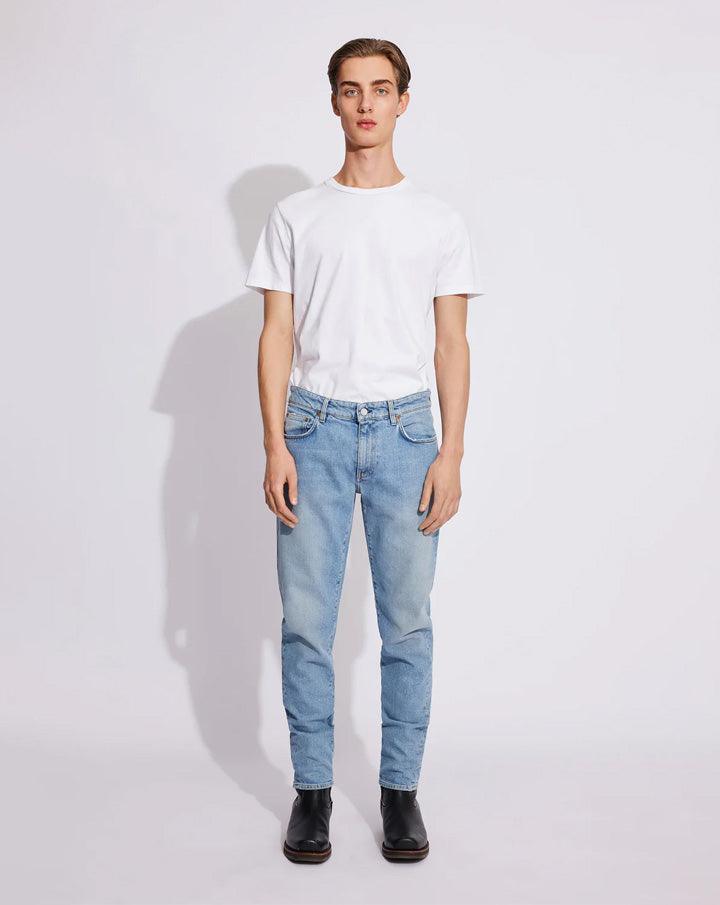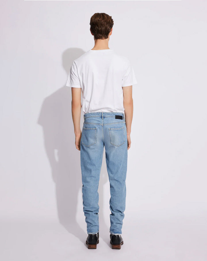 Dean is a pair of classic slim-fit jeans with mid-waist, zip fly and slim leg. The jean's construction comes with five pockets and five belt loops. Features branded logo buttons and rivets, leather labels, and our signature dart on the back pockets.