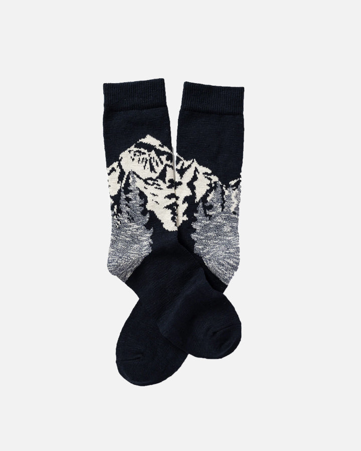 A panoramic view to bring the peaks to your feet! These mountain landscape socks are knitted in slub cotton in a range of colors. In terms of quality, they are soft, plush, and comfortable. The color gradient gives them a painterly and poetic look. As detailed as a little sweater on your feet.