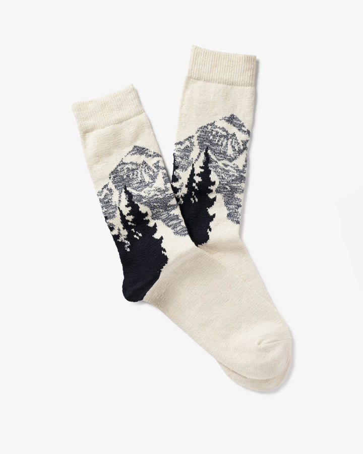 A panoramic view to bring the peaks to your feet! These mountain landscape socks are knitted in slub cotton in a range of colors. In terms of quality, they are soft, plush, and comfortable. The color gradient gives them a painterly and poetic look. As detailed as a little sweater on your feet.