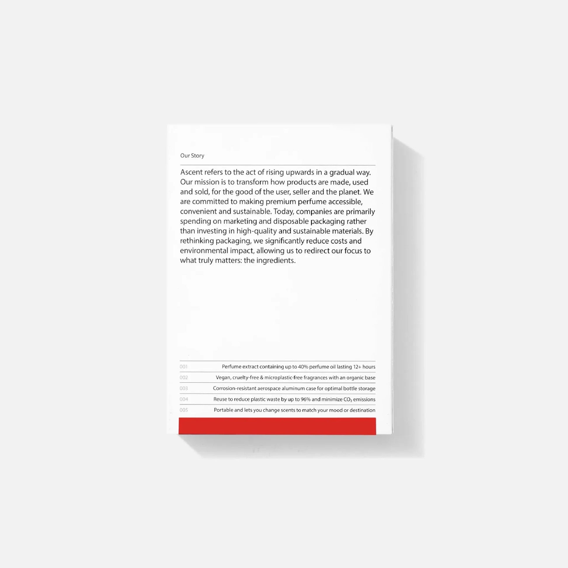 Ascent Blue parfumextract is een suggestief uniseks parfum dat rokerige, sensuele noten mengt met houtachtige en poederachtige akkoorden, met 35% parfumolie die meer dan 12 uur blijft hangen. Hoewel het het hele jaar door gedragen kan worden, komt het geurprofiel vooral tot zijn recht in de herfst. Het is veganistisch, wreedheid-vrij en gemaakt op een organische basis.