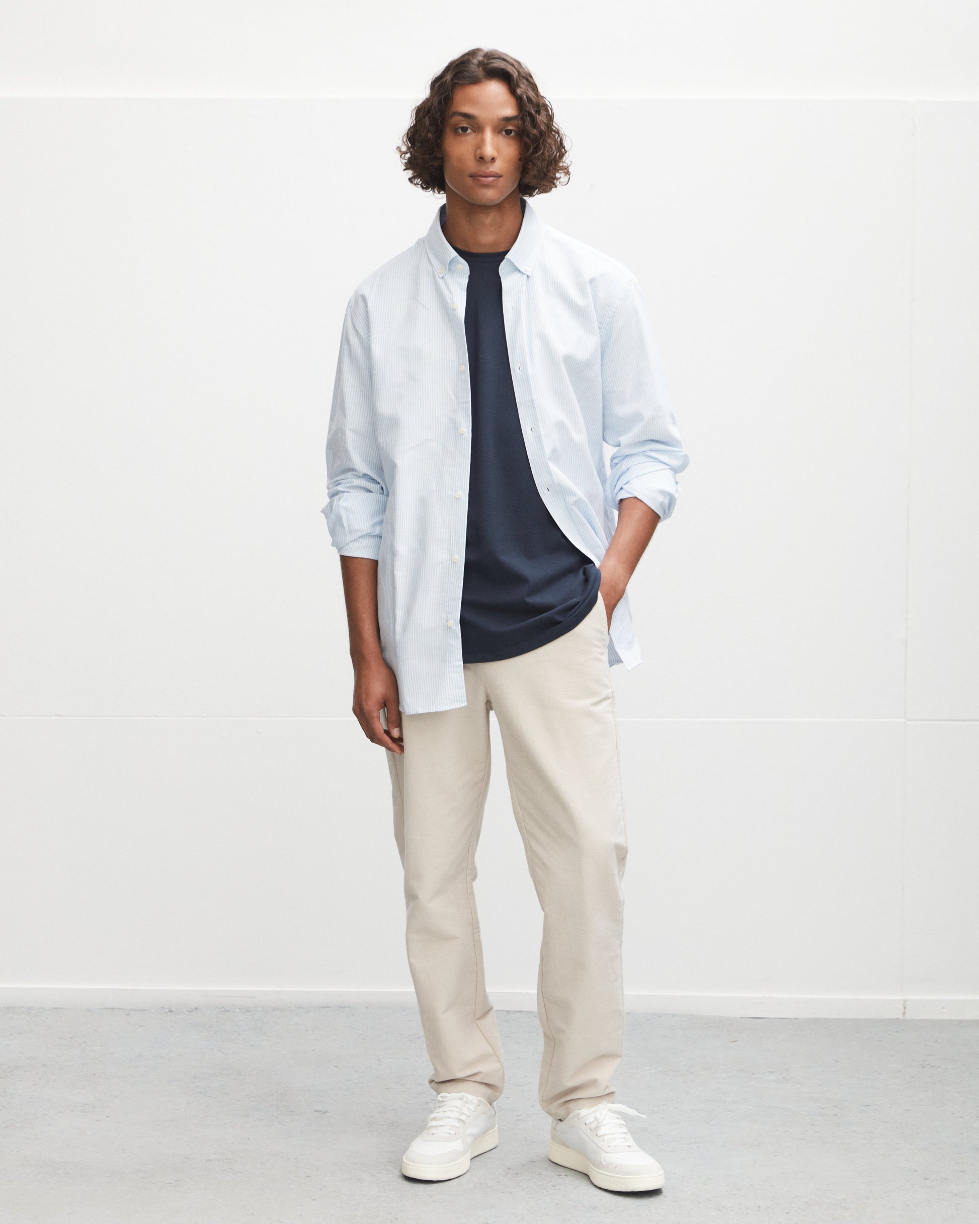 The Essential - Oxford of The GoodPeople is een lichtblauw gestreept shirt. Eenvoudig en schoon. Dat is alles wat je soms nodig hebt. Houd het verborgen of rol de mouwen na uren op om een vleugje karakter aan je outfit te geven. Draag hem naar formele dagen op kantoor of casual dagen in het weekend! Het is jouw keuze!