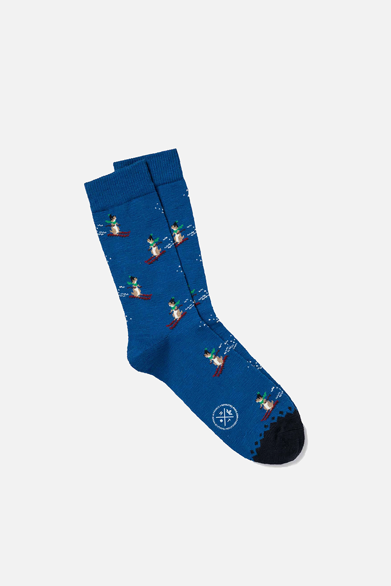Ideal for après-ski, these mid-thick socks patterned with marmots skiing on the slopes are made in France.