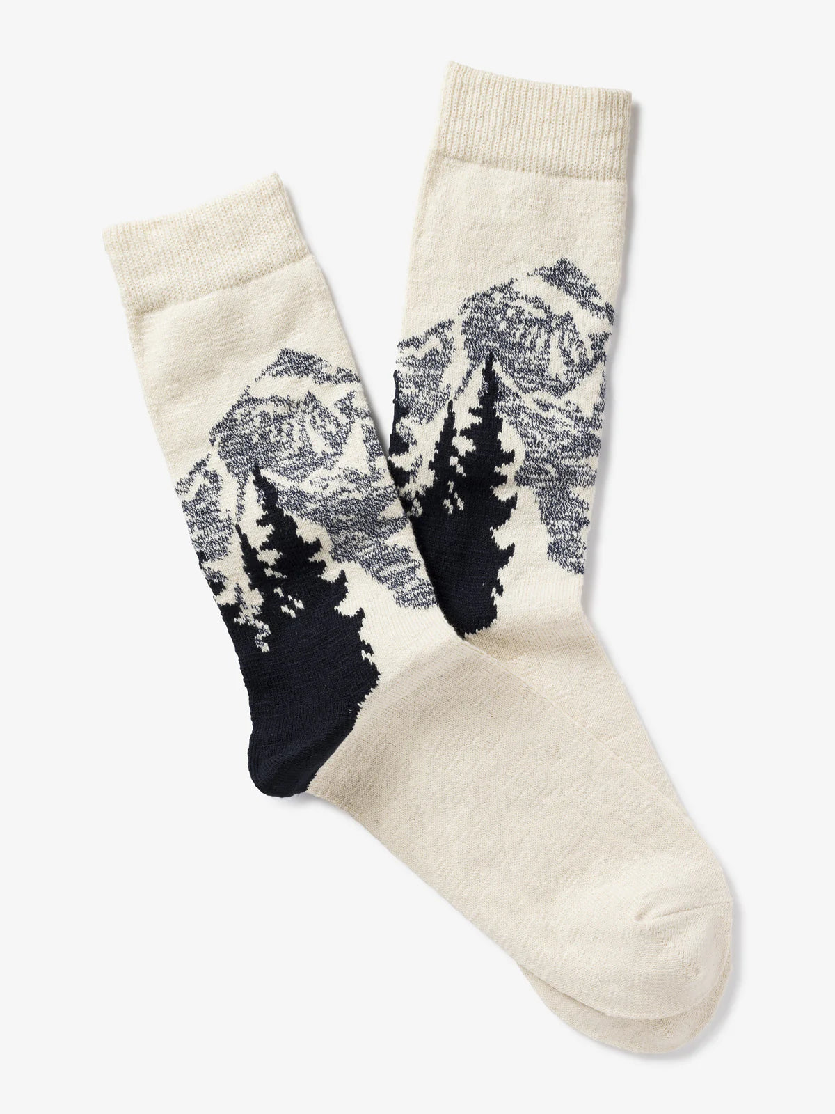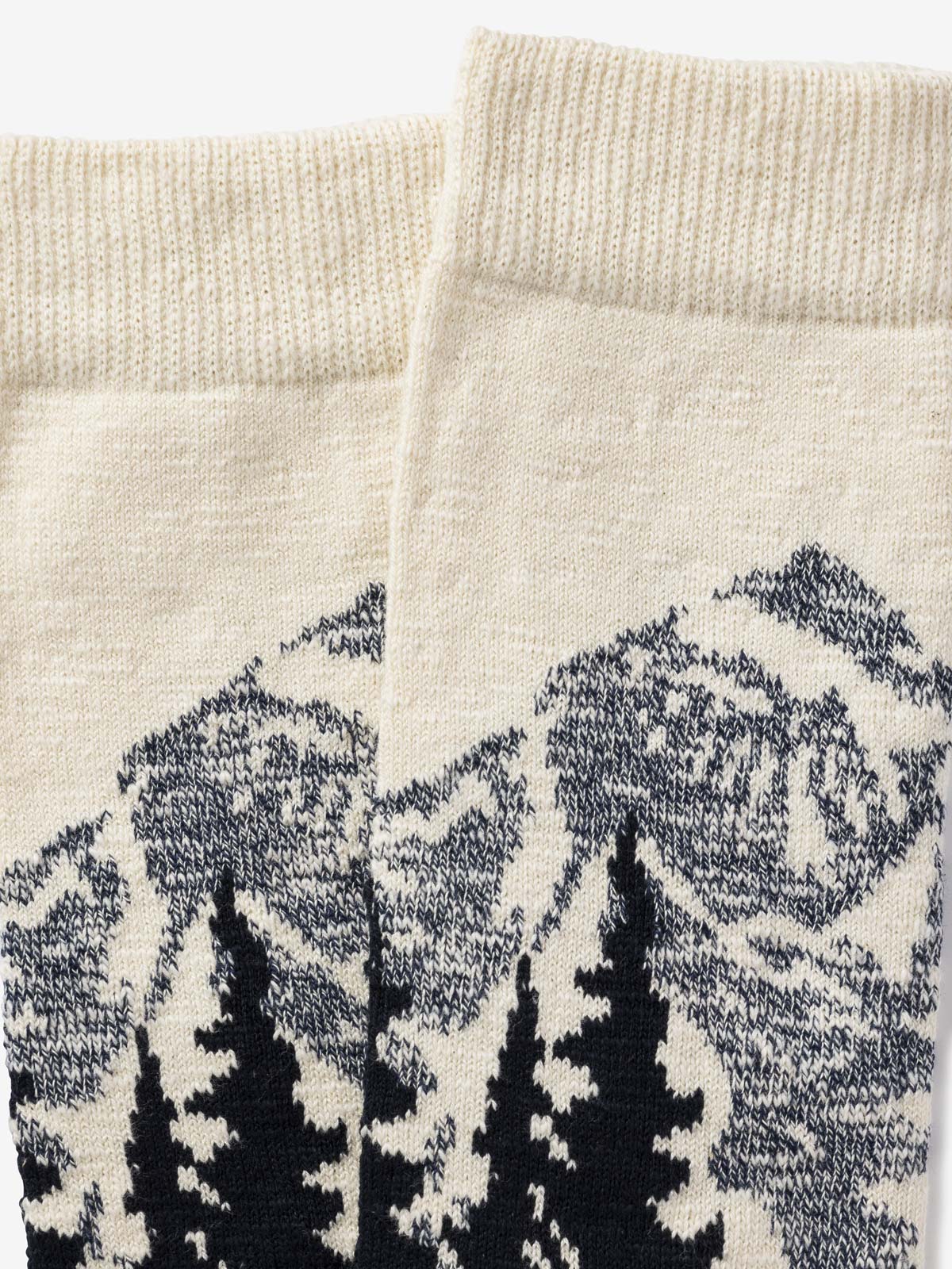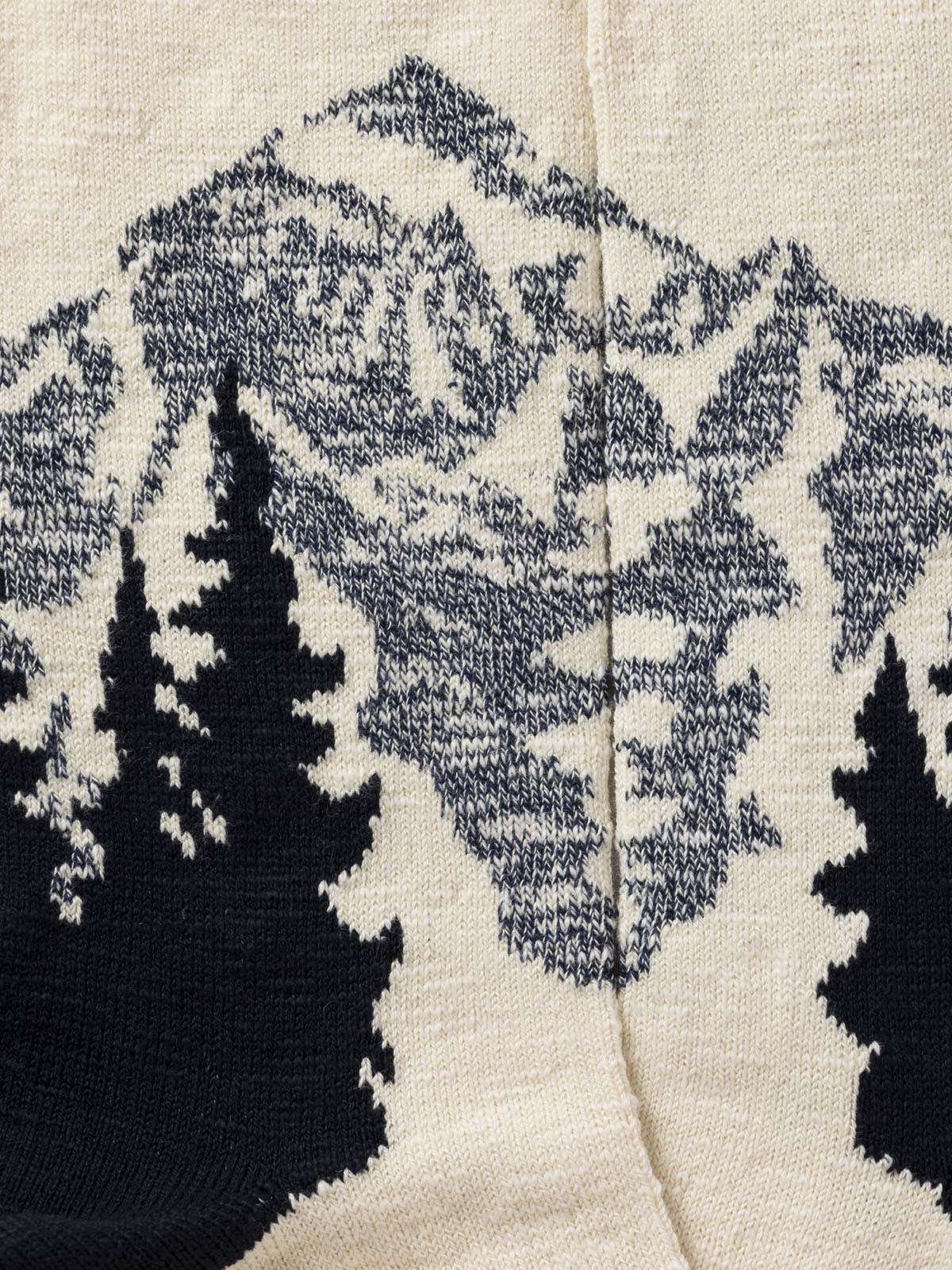 A panoramic view to bring the peaks to your feet! These mountain landscape socks are knitted in slub cotton in a range of colors. In terms of quality, they are soft, plush, and comfortable. The color gradient gives them a painterly and poetic look. As detailed as a little sweater on your feet.