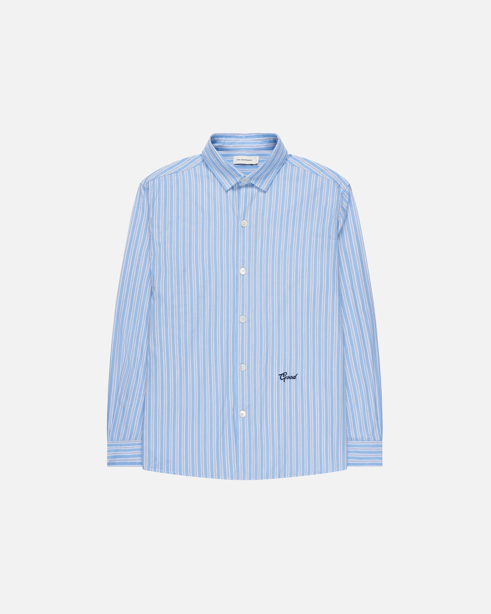 Classic stripes, modern attitude. The Sblock blouse stands out with bold GOOD embroidery, a little detail with a big statement. Light, effortless, and endlessly wearable.