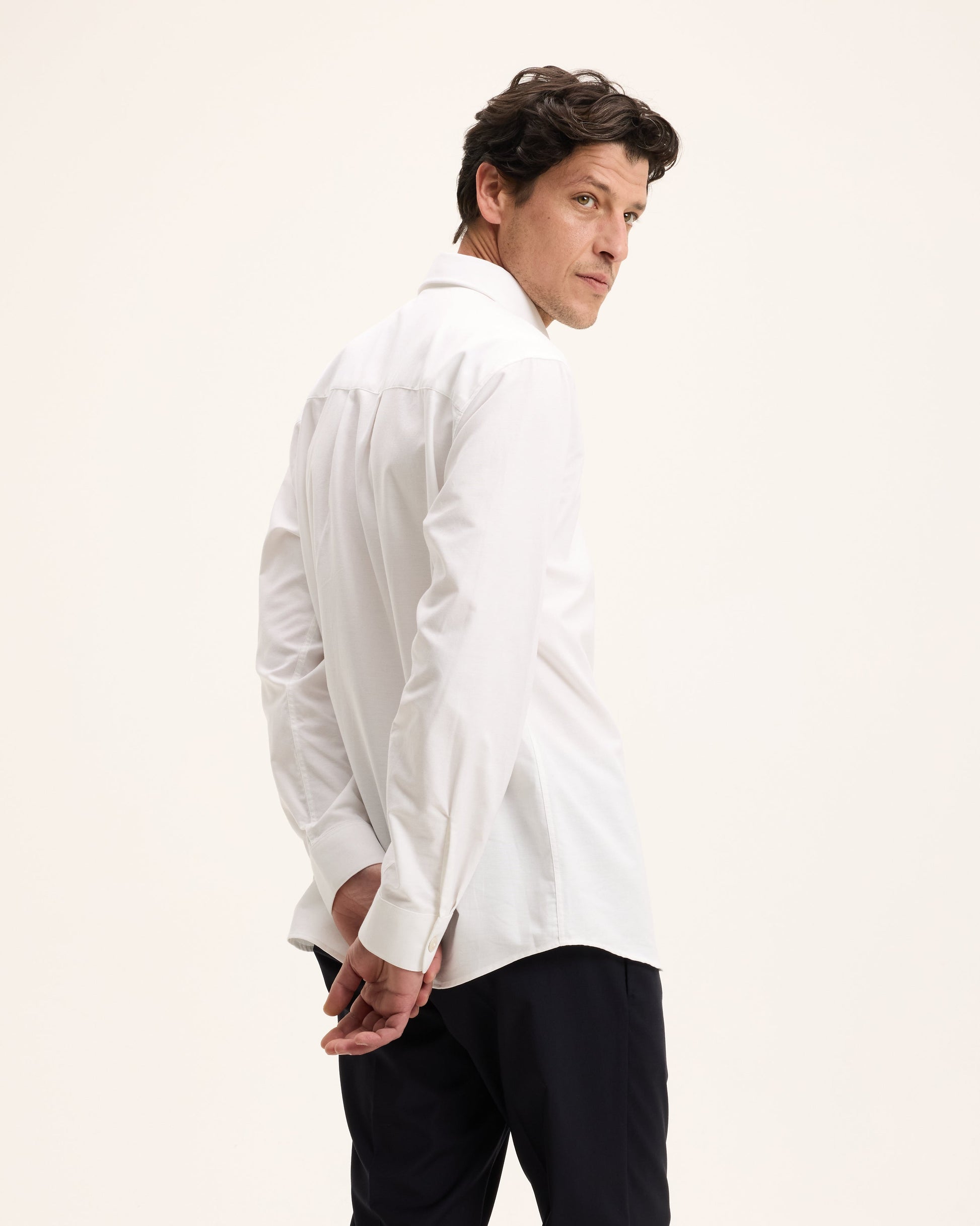 A classic shirt with a clean and relaxed fit. The fabric has a smooth surface and feels comfortable directly on the skin. An easy piece that fits naturally into a daily wardrobe.