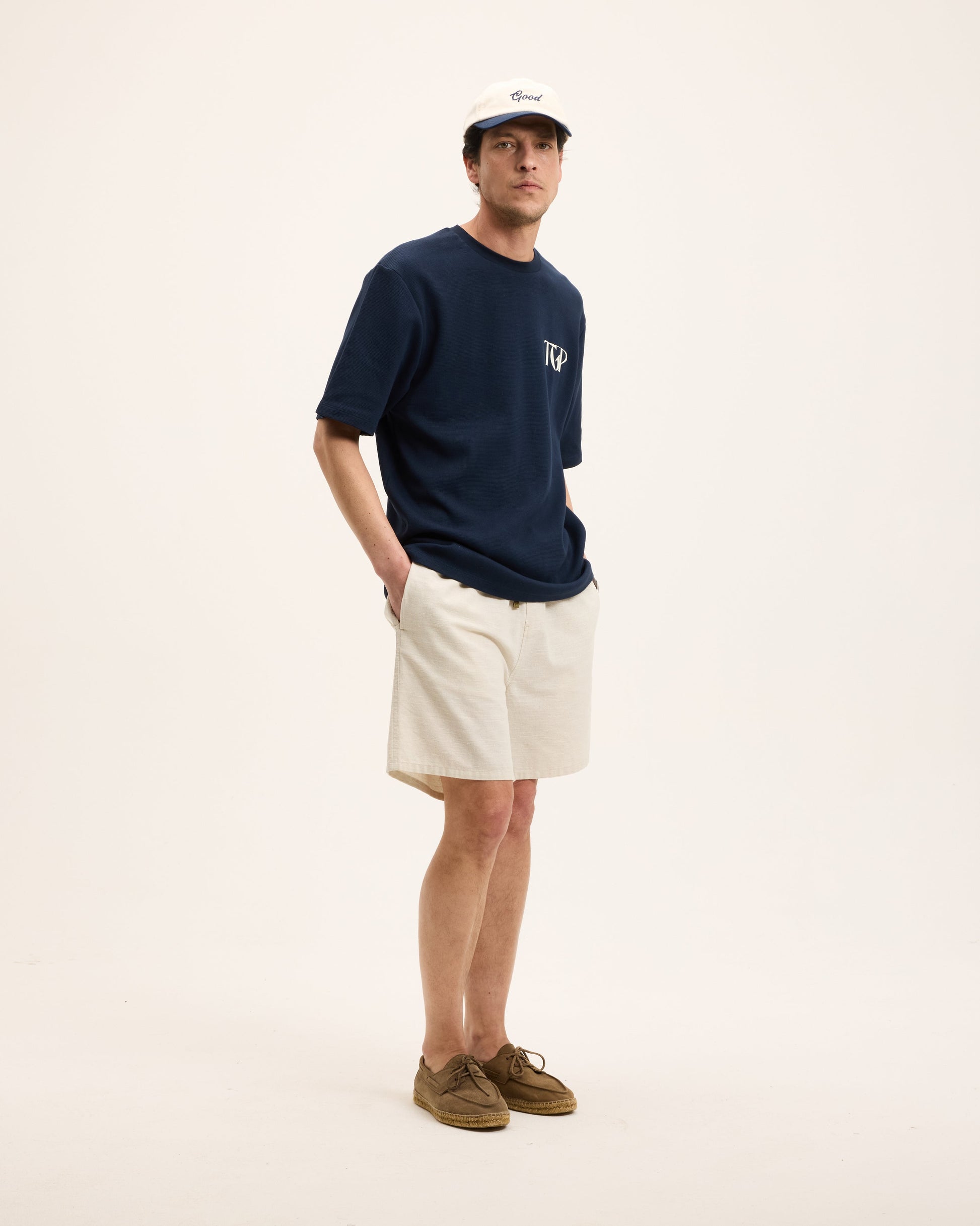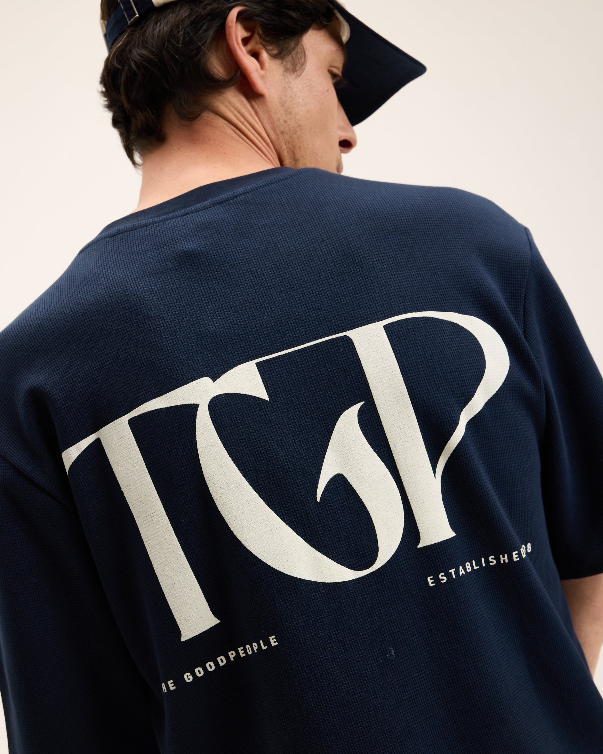 The Ton Piqué Artwork Tee stands out through its textured surface and bold graphic print. The piqué fabric adds a subtle structure to the tee, giving it more depth than a standard jersey while keeping the overall look relaxed. A small chest print keeps the front clean, while the large back artwork gives the shirt its character.