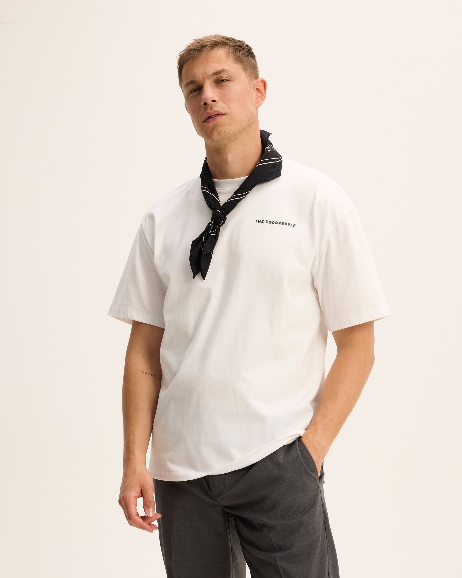 Meet Tuur, a relaxed fit tee for those who find a plain white shirt too boring. The back print features a dynamic design of two basketball players in action, a nod to a sporty escape during your busy day in the park and an ode to park culture.