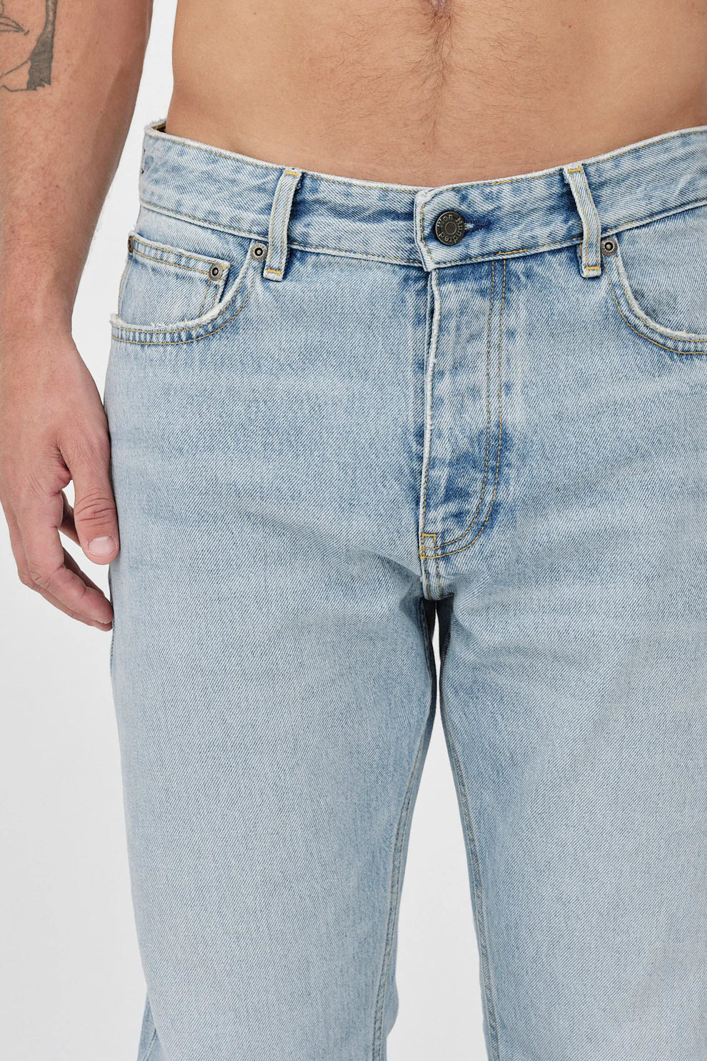 Archer is pair of relaxed slim-fit jeans in a regular length with a mid-waist, button fly, and tapered leg. The jean's construction comes with five pockets and five belt loops.