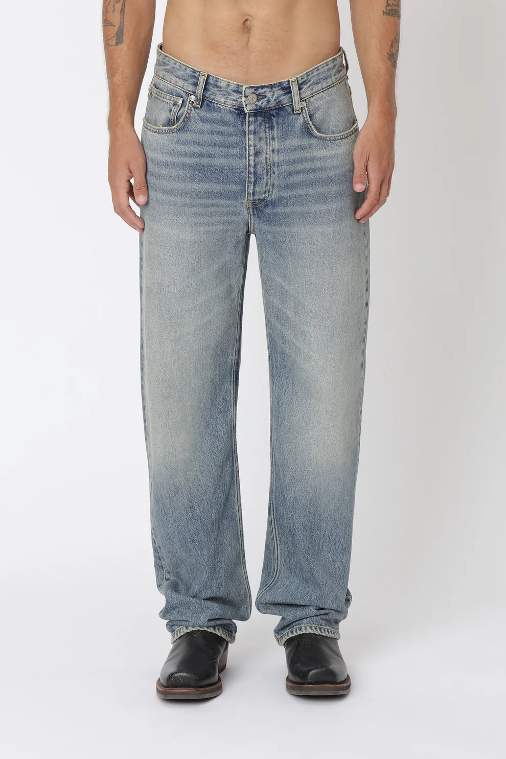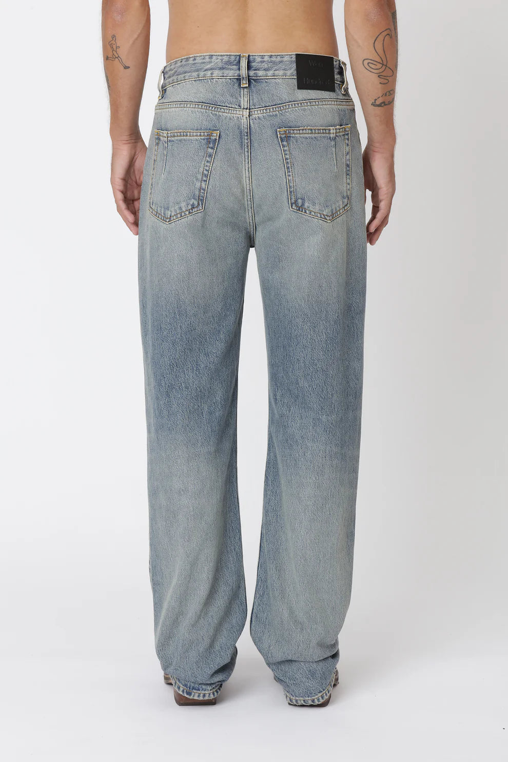 “Steve” is a 90’s loose fit jeans with a mid-rise, button fly and relaxed straight leg. The jeans construction comes with five pockets and five belt loops. They feature branded logo buttons, rivets and leather labels, as well as our signature dart at the back pockets.